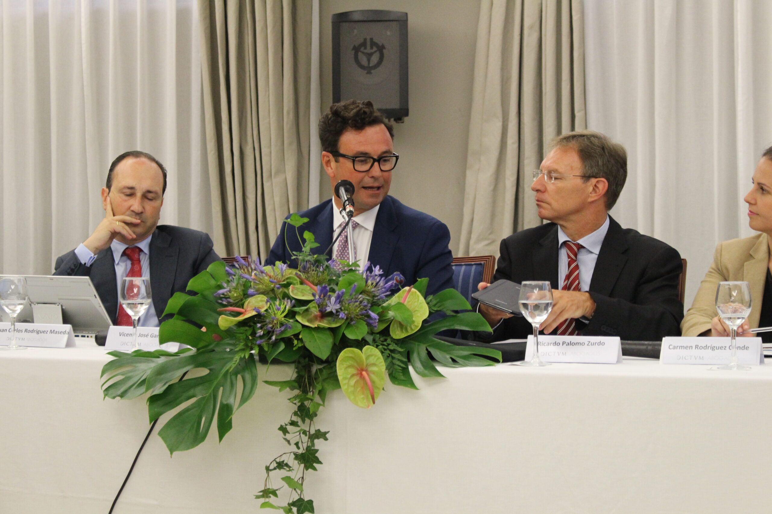 Vicente José García Gil, CEO de Dictum; Aurelio Gurrea Chalé, presidente de Dictum;Juan Carlos Rodríguez Maseda, socio de Dictum; Carmen Rodríguez Conde, socia de Dictum en Hong Kong; Virginia Rey, abogada en Dictum; Carlos Pedreira Freire, director financiero y jurídico de ITFAS Hong Kong-Grupo Kiabi; Ricardo Palomo Zurdo, socio de Dictum; Angélica Díaz de la Rosa, miembro de Dictum, o Jose Luis García Pita, catedrático de derecho mercantil y socio de Dictum, trataron en la cita madrileña sobre las ventajas fiscales de Hong Kong y el convenio con España, la fiscalidad internacional o Hong Kong como sede de Arbitraje, temas que entre otros, fueron el eje para explicar el mercado hongkonés en continua expansión y crecimiento.